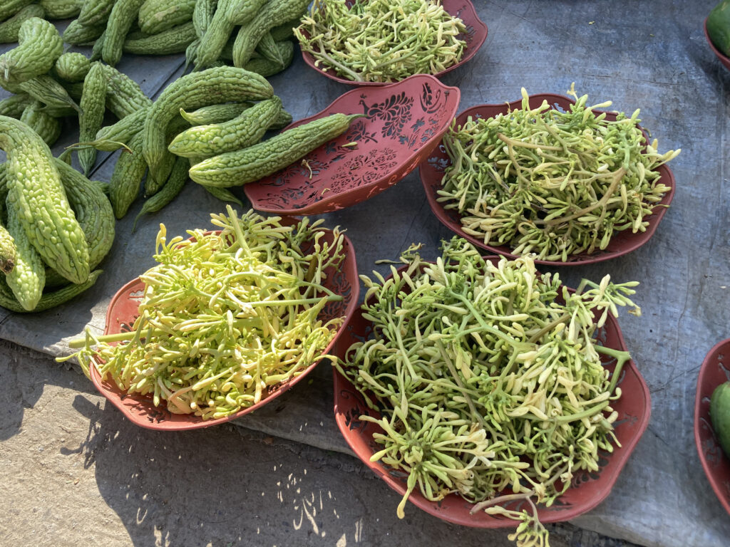 東ティモールの市場にある八百屋さんの一角には、他のアジア諸国ではお目にかかれない食材があります。パパイヤを実のみならず、花まで食材として活用するのは、2002年まで統治されていたインドネシアの料理が普及している一方で、東ティモール独自の食文化の一つと言えます。