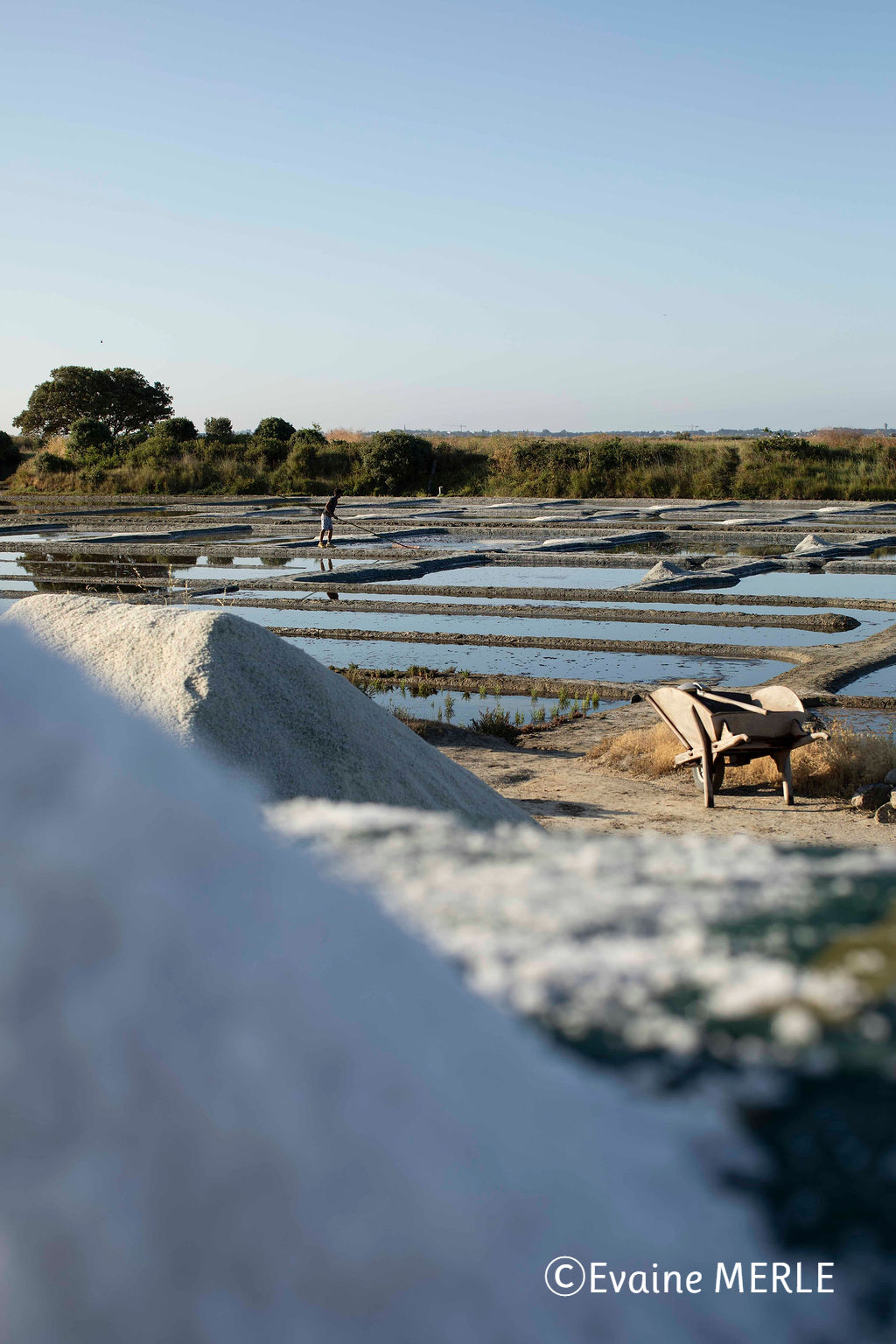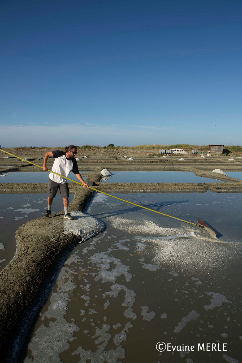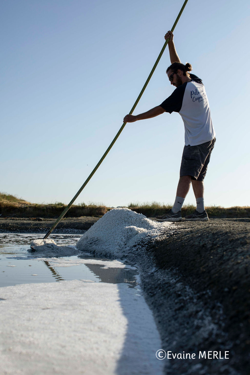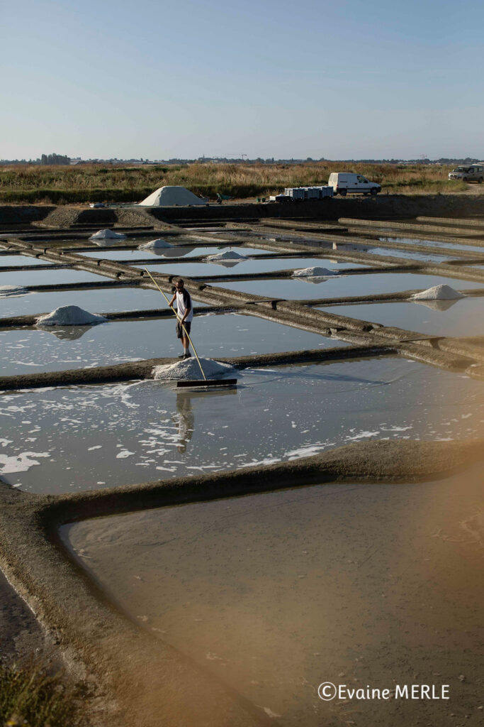 ゲランドの塩づくりに必要なのは、日照、風、雨が降らないこと。快晴でなくとも少しの雨なら大丈夫ですが、日照と風は特に重要です。6~7月は日照時間が長く、良い条件が揃いやすい時期です。理想の気温は25~30℃、風向きはより乾燥する西風がベストとのこと。欧州の他の地域では、今年は酷暑になりましたが、入り江に囲まれたゲランドでは、あまり影響が出ずに済みました。