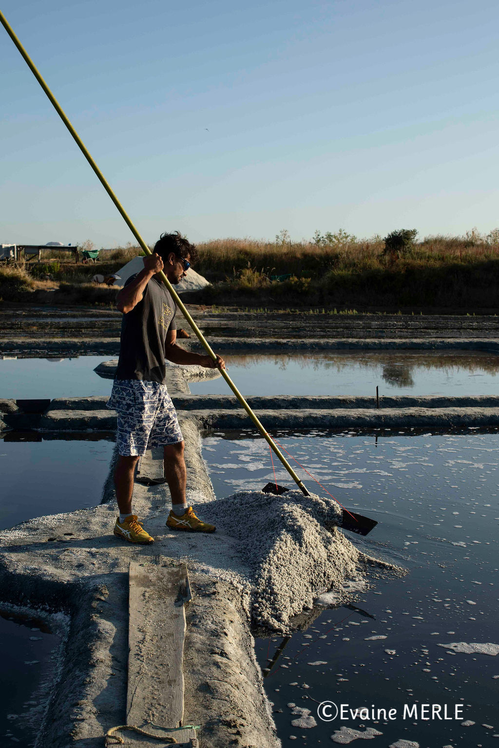 塩の収穫シーズンは6月中旬から9月中旬。この3ヶ月程の期間のうち、天候などの様子を見ながら30~35日かけて行われます。昨年は長雨により、塩の収穫開始が3ヶ月ほど遅くなるという異例の年でした。収穫量は毎年平均で約14,000トンあるところ、昨年は1980年以来の大不作で約700トンと最低量でした。