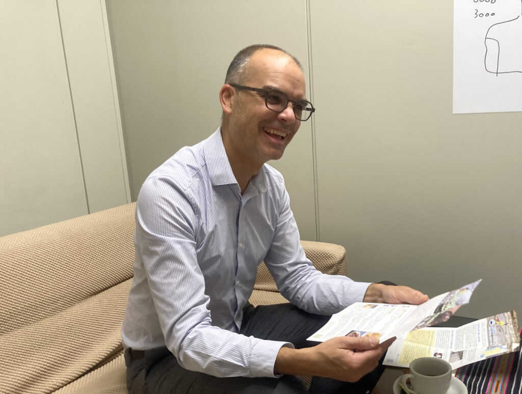 サリーヌ・ド・ゲランド社(以下、ゲランド社)のスタッフ、フレデリック・アモンさんが1年ぶりにATJに来社しました。今年の収穫状況や塩職人について伺いました。