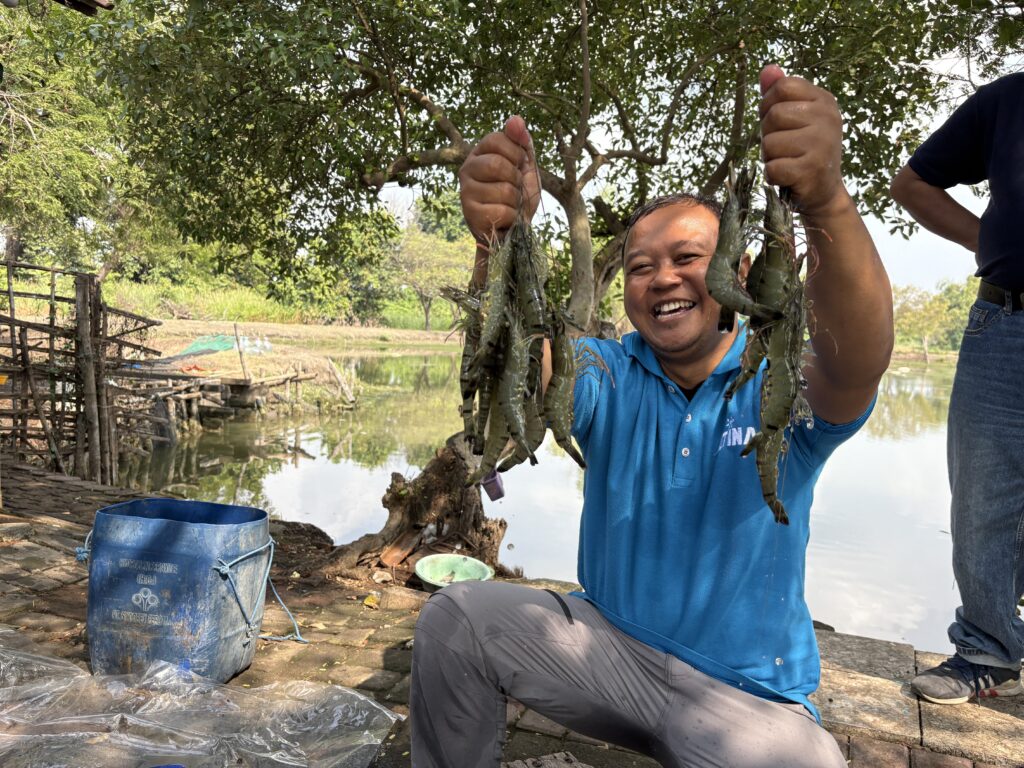 エコシュリンプは、インドネシアで環境に配慮した粗放養殖で育てられたブラックタイガーです。稚エビ放流後は人工飼料、抗生物質を使わずにエビを育てるため、プランクトンなどの自然のエサが発生しやすいように養殖池の土づくり、水の塩分濃度の調整など、生産者がやるべきことはたくさんあります。生産者にエコシュリンプ養殖の課題について聞くと、ほぼ全員が口を揃えて、「昔に比べて収獲量が減少している」と言います。
