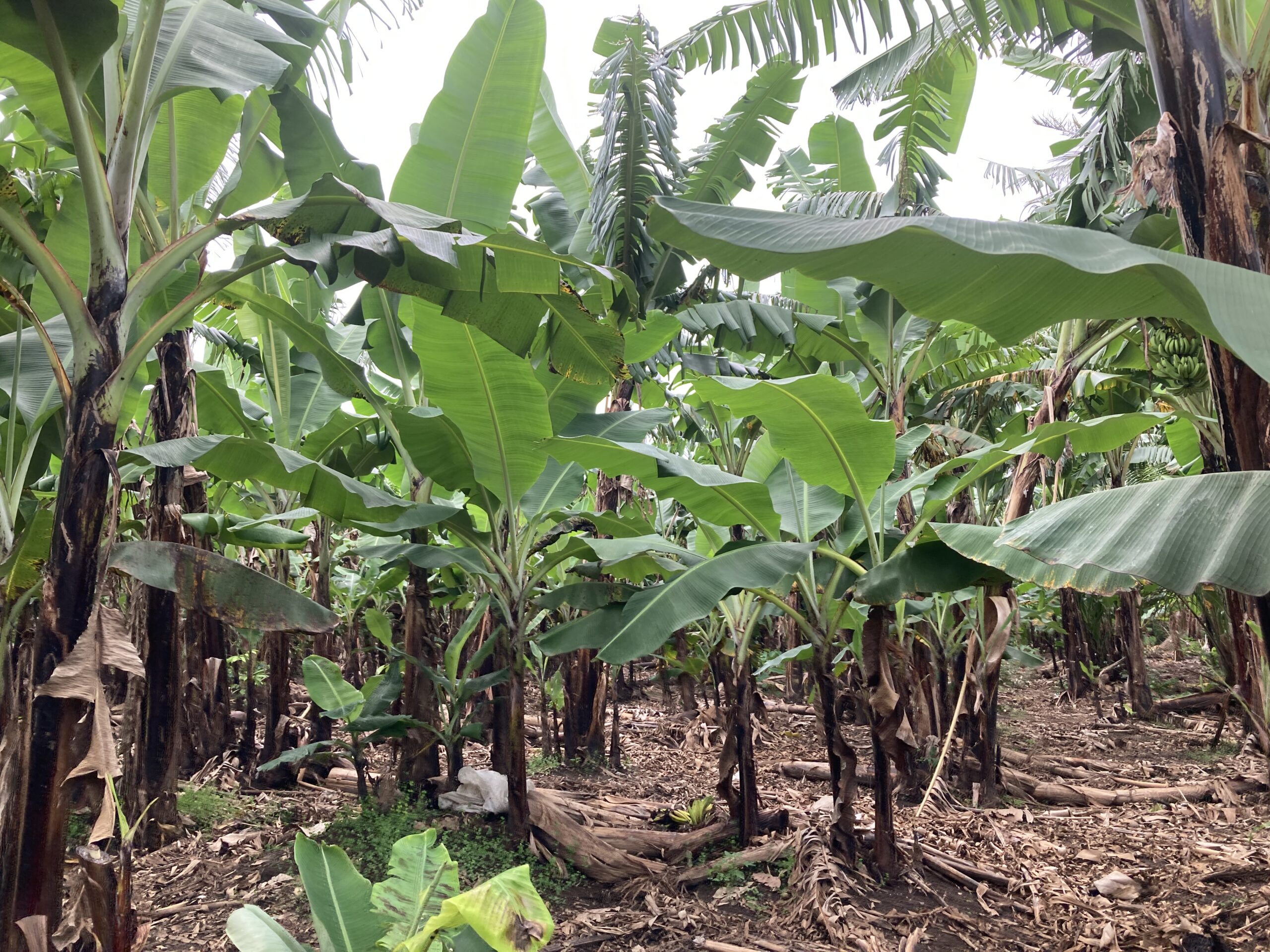 畑は全部で4ヘクタール。もともとは両親が持っていた土地で、現在は母親から受け継いだ圃場でバナナを栽培しています。父親から譲り受けたもう一方の土地は傾斜のある場所にあり、「もう年をとったから、なかなか手入れに行けなくてね。今ではサルたちの住処になってるよ。」と笑いながら教えてくれました。