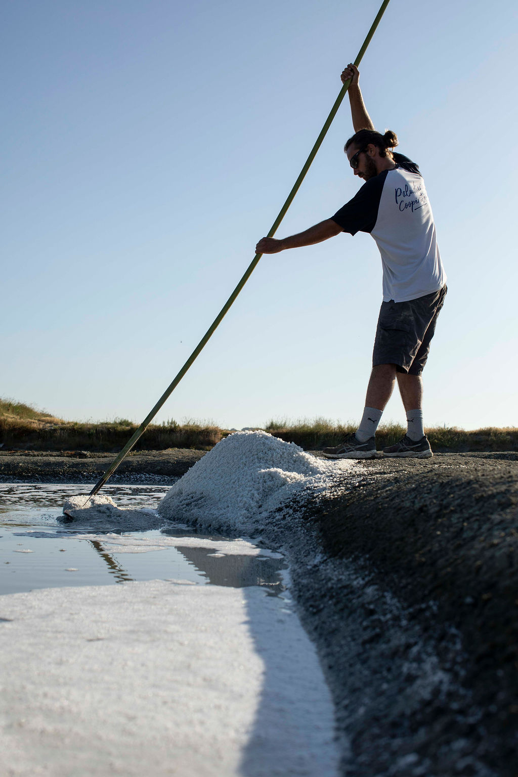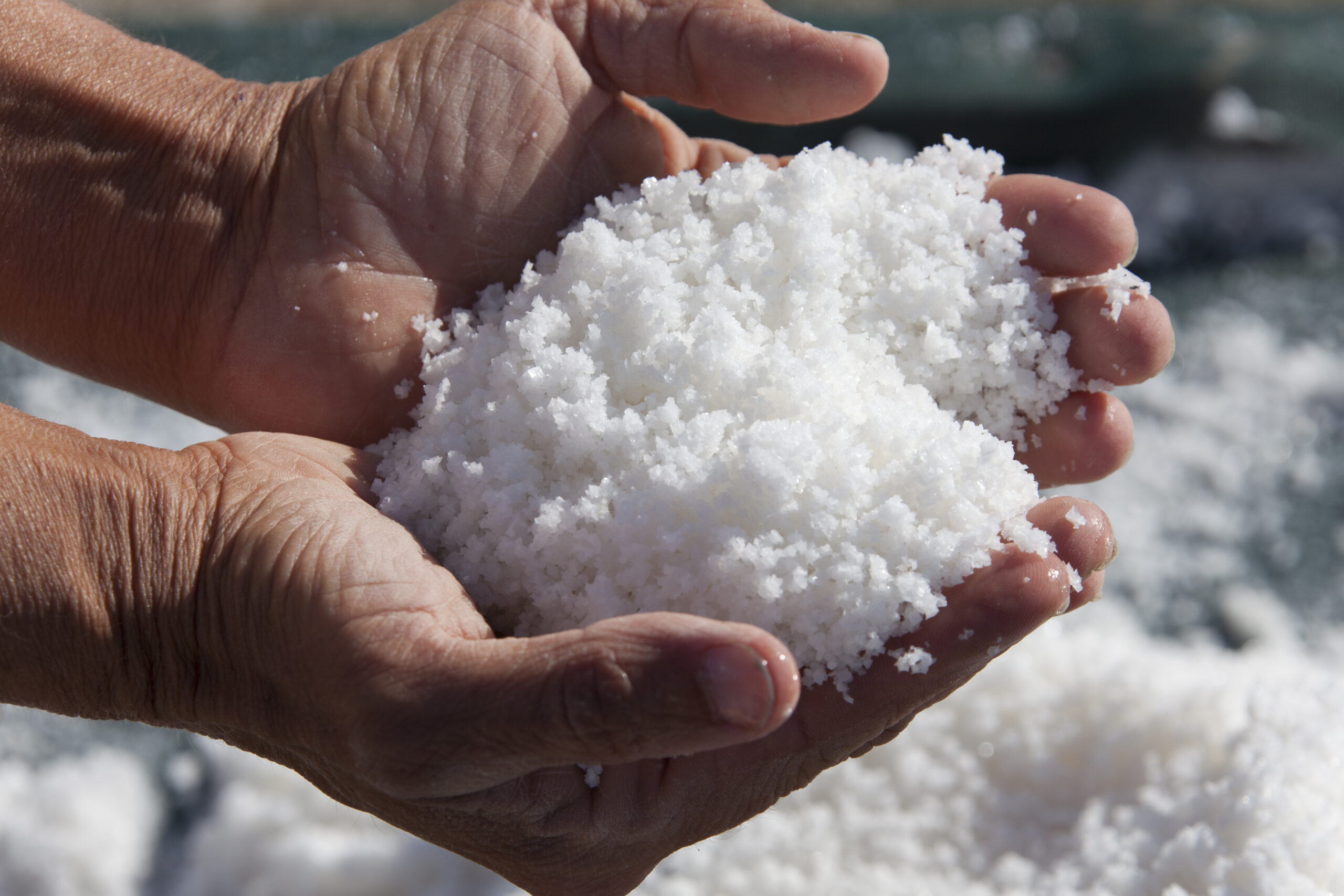 ゲランドの塩の収穫時期は6月中旬から9月中旬。この3ヶ月程のうち、天候を見ながら30~35日かけて行われます。昨年は長雨により、収穫開始が3ヶ月程遅くなるという異例の年となりました。収穫量も平均の約14,000トンに対して、昨年は1980年以来の大不作で約700トンでした。