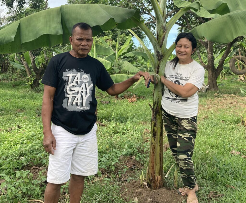 そうして、帰国後に議論を重ね、オルタートレード・フィリピン社(ATPI)の協力も得て、約2000株のバランゴンバナナを植え付けました。バナナの栽培管理は、第8期研修の卒業生であり、卒業後はスタッフとして経験を積んできたドロイさんが中心となり、農場長のカルロスさんが補佐を務めています。2025年5月末に初めて収穫、その後も順調に出荷ができるようになり、10月までに約4000キロのバランゴンバナナをATPIに販売しました。また、ATPIと協力して生育実験なども実施してきており、将来的には、ネグロス島のバランゴンバナナ生産者がKF -RCに集い、栽培技術向上のための学び合いの場となっていくことも期待されます。