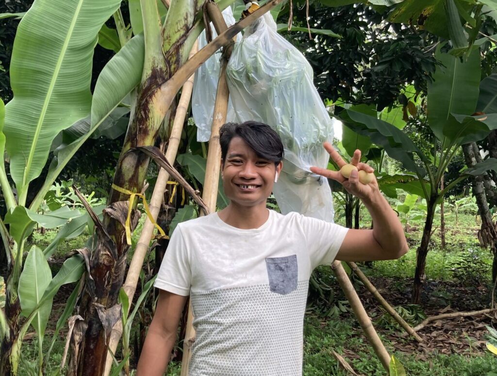 これまでバナナに関しては地元で販売するラカタンやサバ(調理用)といった種類を中心に栽培していましたが、事務局長のエムエムさんが2024年に来日したことをきっかけにして本格的にバランゴンバナナの栽培を開始しました。エムエムさん、日本で生協の組合員の皆さんと交流できたことで「今までは、日本の皆さんからネグロスの若者たちの学びの機会を『支援してもらう』という関係性だったけれど、自分たちも民衆交易の生産者に仲間入りして、日本の消費者の皆さんにバナナを届けられるようになりたい」と強く感じたとのこと。もちろん根底には、バランゴンバナナの生産と出荷によって、農場運営注2の安定化につなげたいという思いもありますが、長年にわたって自分たちの活動をサポートしてきてくれた方たちにバナナを届ける生産者になることでそれが実現できたら最高!というわけです。