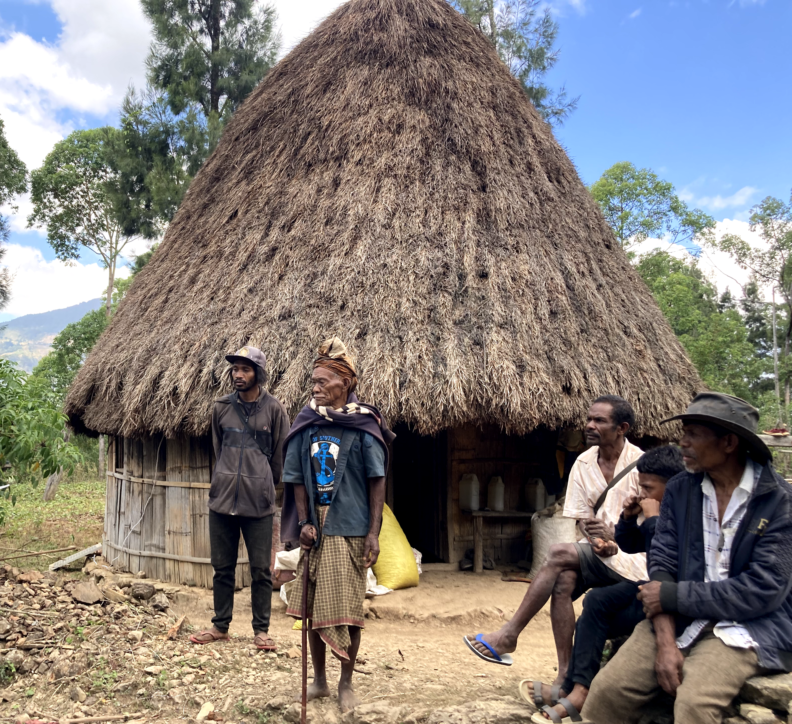 次に訪れたのは、ハトリア群よりもう少し標高の高いレテフォホ郡にある生産者グループ、オルパナです。ここでは水不足に悩まされている話を聞きました。雨季と乾季がはっきりしている東ティモール。雨季に降った雨水を蓄える施設のある地域が少なく、乾季は近くの水源から水をひいてくるか、たまに降る雨に頼るしかないとのことです。訪れたのは乾季の真っただ中の7月、確かに乾燥していました。