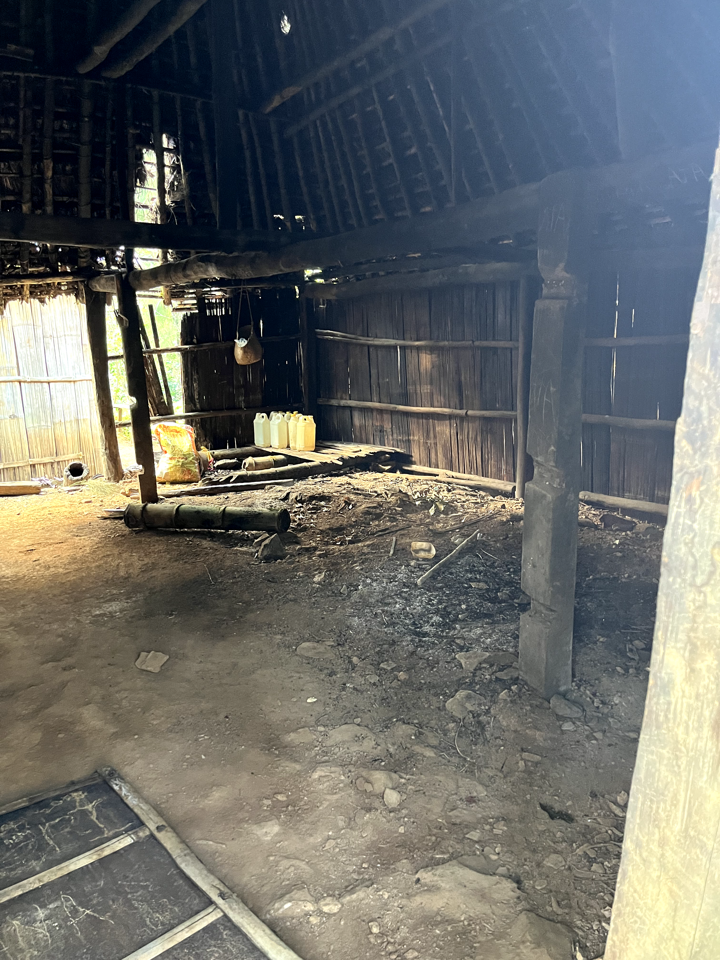 この地域には伝統的な家屋があり、家の中も見せてもらいました。電気は通ってはいますが、レンジや湯沸かしなどの 家電はありません。電力供給が安定せず、山間部だけでなく都市部でも停電になることがよくある東ティモール。この村では、薪をくべて、料理やコーヒー豆の焙煎をフライパンでおこなっていました。