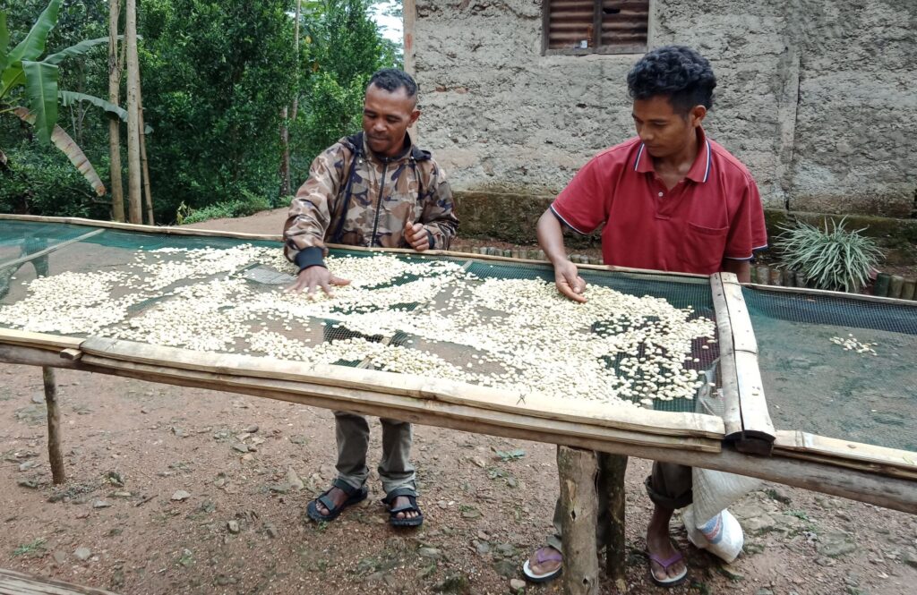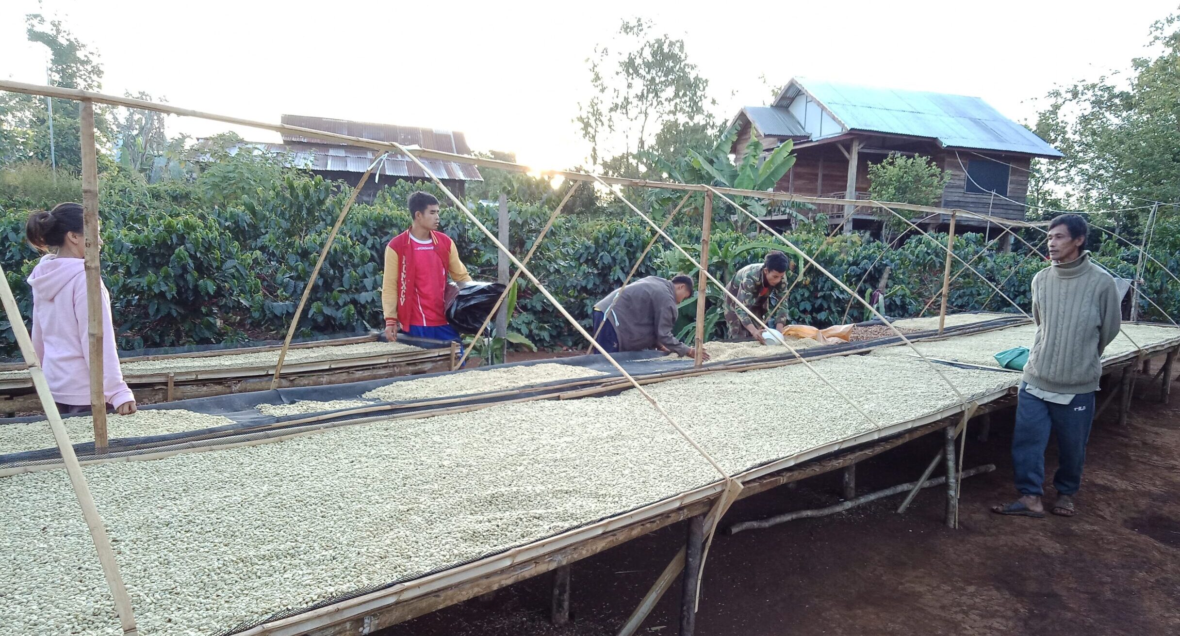 東ティモールでも省スペースも兼ねて、日陰で風にあててじっくりと乾かし風味をよくする二段ベッドを考案する生産者もいます。中南米やアフリカに負けない美味しいコーヒーをめざして、同じ東南アジアの産地で生産者の皆さんと一緒に切磋琢磨しながら頑張っていきます。