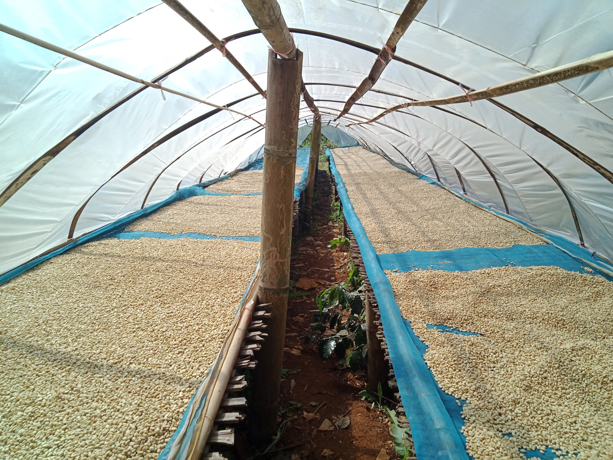 東ティモールでは、数年前までピクニックで使うようなビニールシートを地面に敷いてコーヒー豆を乾燥させていましたが、風が吹いたりトラックやバイクが通ったりすると砂埃が舞いますし、放し飼いの犬や鶏、豚がコーヒーの上を歩くおそれもないとは言えません。