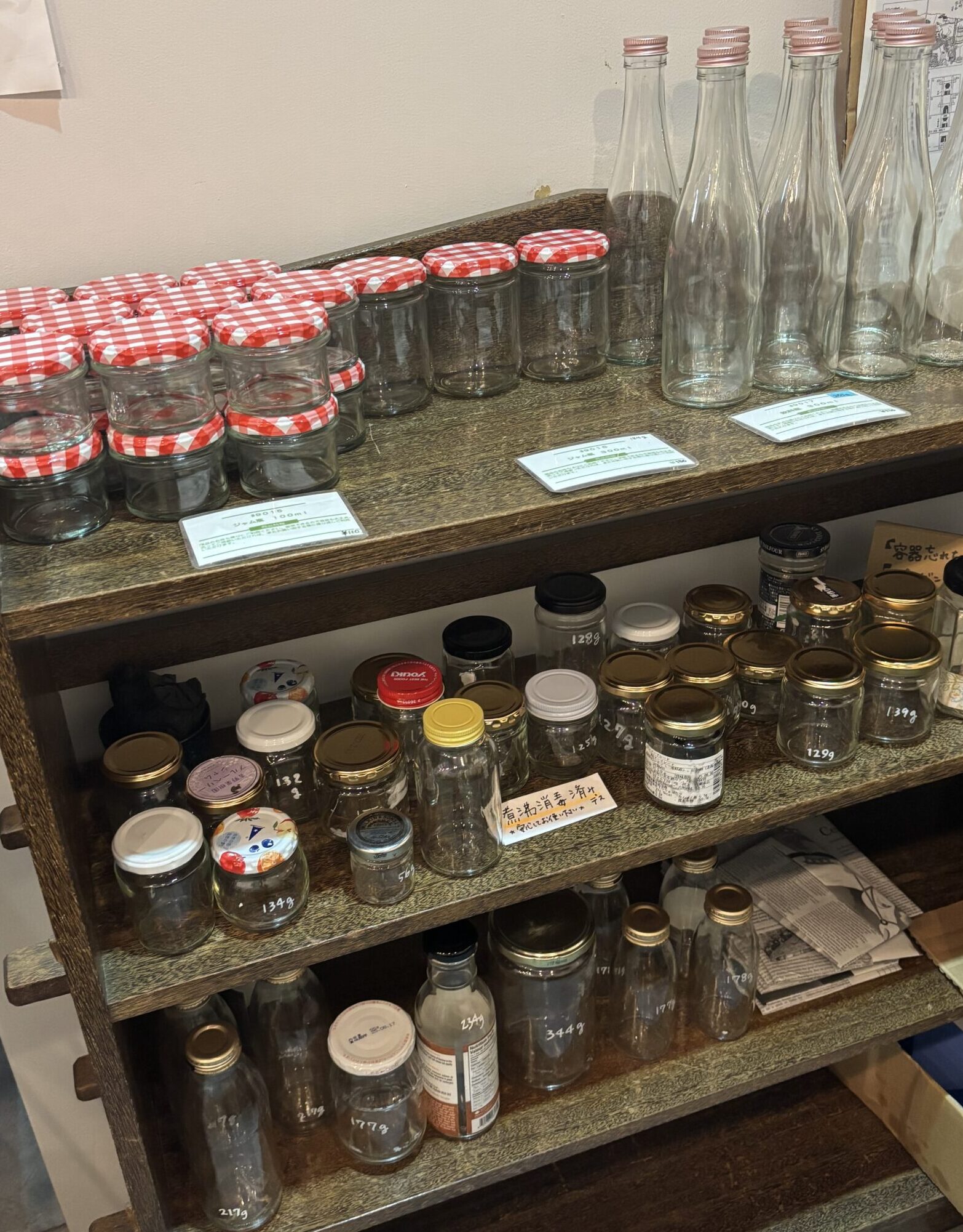当初からメインに考えていた量り売り。作り手の顔が見える、環境に負荷をかけない、地場のものなど、商品の選定基準にも強い思い入れがあります。店内には、調味料、乾物などおすすめの商品が並びます。